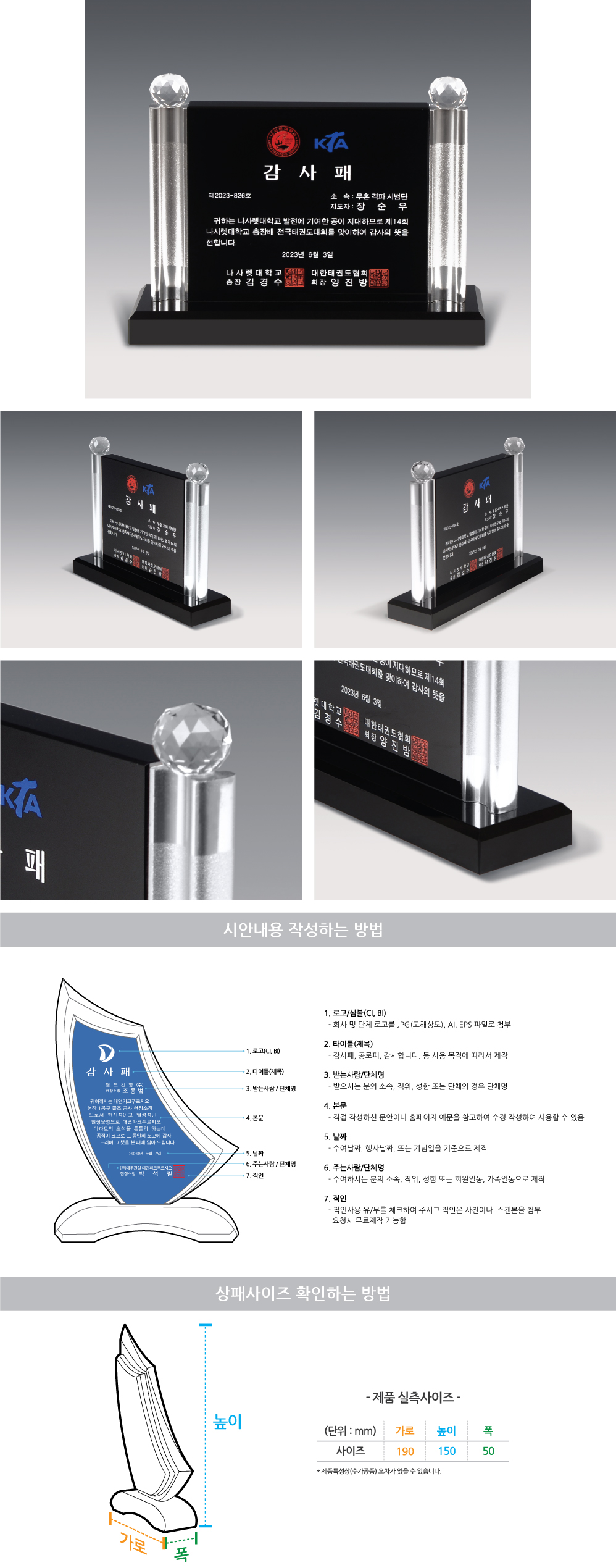 * 상패와 트로피는 상품에 맞는 고급 우단 케이스에 포장됩니다.