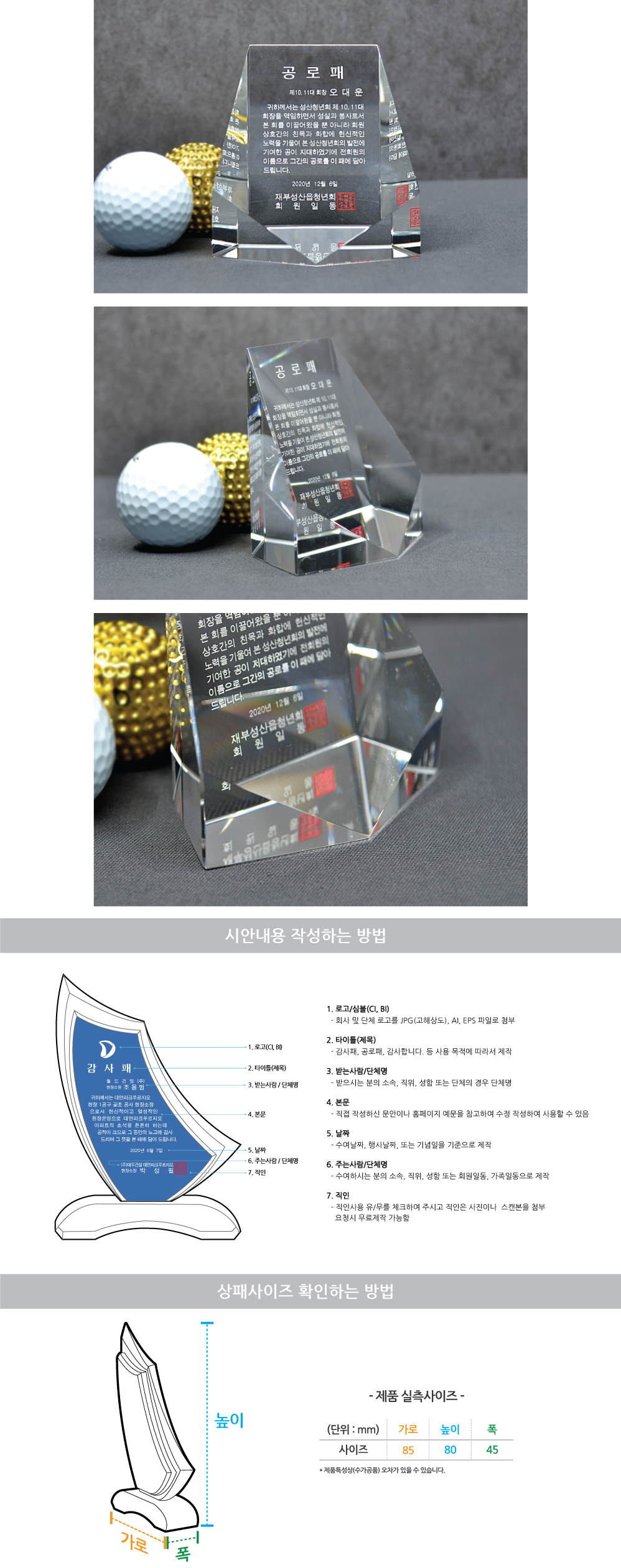 * 상패와 트로피는 상품에 맞는 고급 우단 케이스에 포장됩니다.